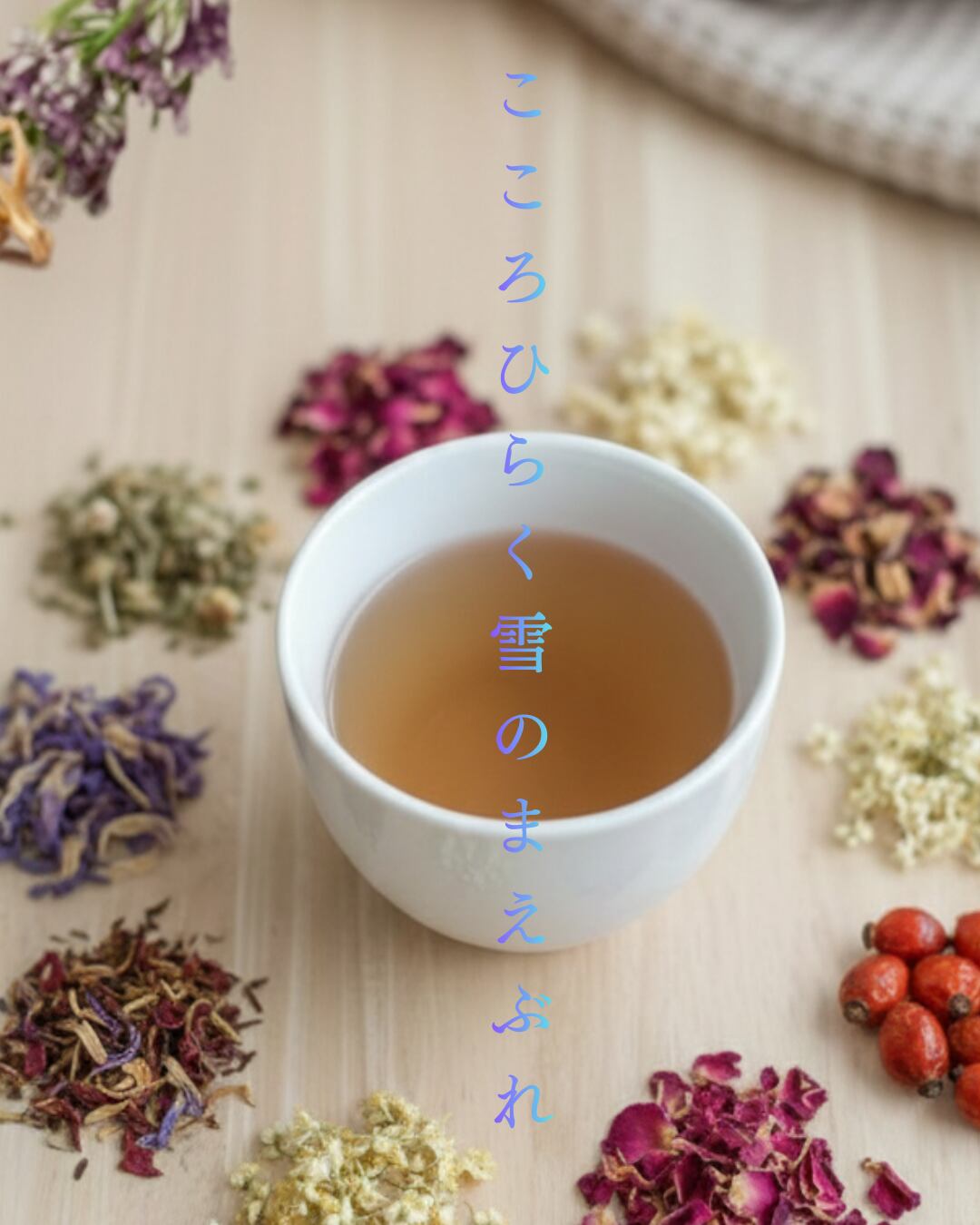 ※※〜心安らぐ一杯をイメージして〜 お茶の写真は、素材の良さをそのままお伝えするために実際に抽出して撮影しております。 周囲のハーブ等は、それぞれのブレンドが持つ豊かな風味やライフスタイルをイメージしたものです。