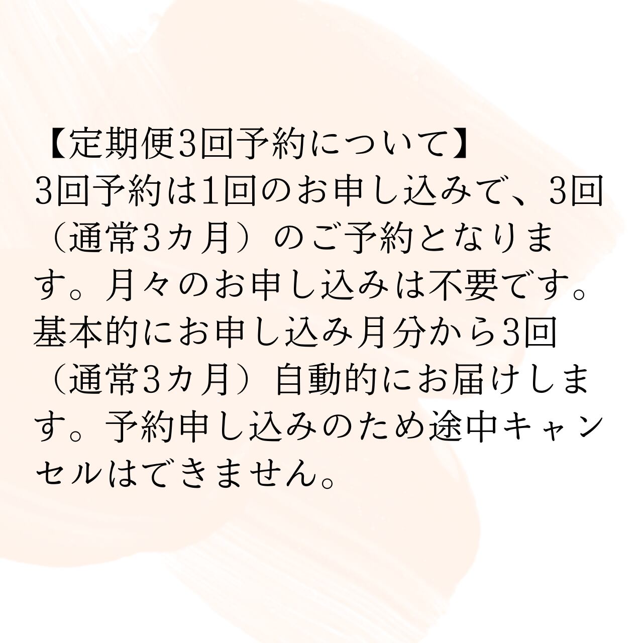 ・月々のお申し込みは不要です。お申し込み月分から3回のお届けとなります。