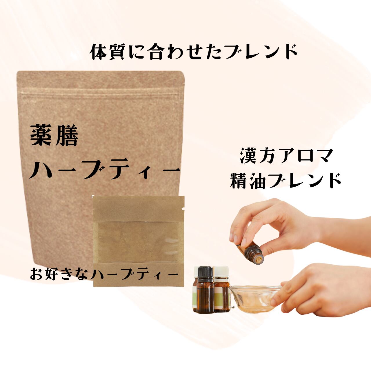 東洋医学の理論であなたの体質を診断し、お体に合わせたハーブティーと漢方アロマ、お灸をお届けします。